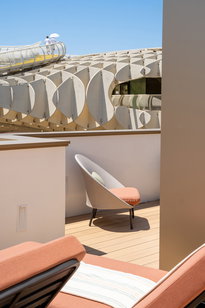 Ubicado en la planta superior, con magníficas vistas de la Plaza de la Encarnación. Habitaciones espaciosas con una amplia terraza.