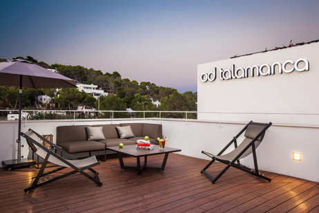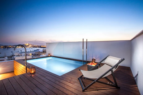 Equipamiento:Balcón y Azotea privada, piscina privada con vistas al mar y a Ibiza, cocina, comedor & salón, 2 dormitorios con baño privado, teléfono, TV con canales vía satélite, caja fuerte, aire acondicionado, escritorio, calefacción, ducha, secador de pelo, albornoz, artículos de aseo, zapatillas, minibar. WiFi gratis en todas las habitaciones. Altavoces Bower & Wilkins, agua de cortesía, minibar, cafetera nespresso, libros Taschen.