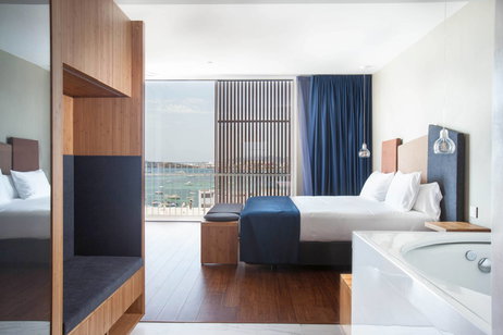 La Duplex Suite, la habitación más destacada de Ocean Drive Talamanca porque, además de todos los servicios que puedas imaginar, incluye un coche durante toda tu estancia para que te muevas por la isla cómodamente y descubras sus bonitos rincones. Estos impresionantes apartamentos tienen dos espaciosas habitaciones, cada una con baño privado y una cocina con entrada independiente para que el servicio de restauración del hotel puede entrar sin interrumpir tu privacidad en la gran sala de estar y comedor. Y para rematar, una espectacular terraza de 120m2 en la azotea, con piscina privada, será la guinda del pastel.